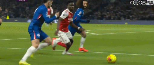 第11分钟,库库雷利亚背后铲倒萨卡,裁判出示黄牌