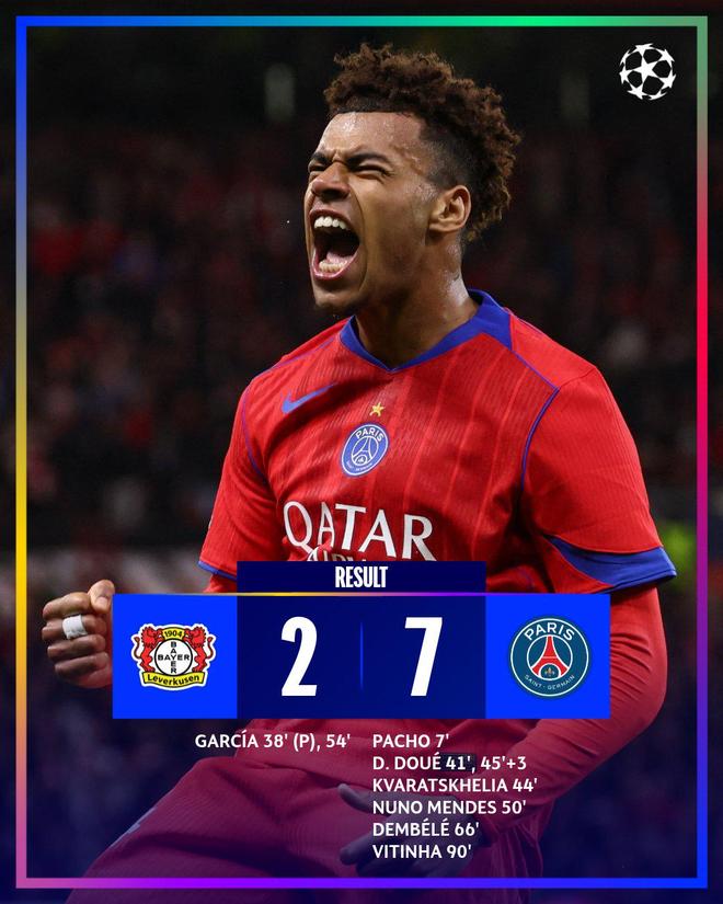 热闻|展示恐怖火力!大巴黎客场7-2狂胜勒沃库森登顶积分榜!