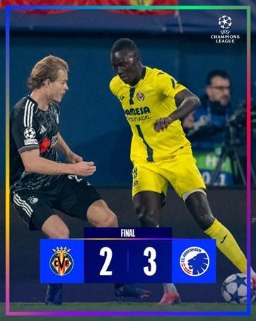 2025年12月11日 欧冠-比利亚雷亚尔2-3哥本哈根遭绝杀 六轮仅一分列倒数第二