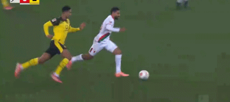 第71分钟,奥格斯堡获得良机,乔林-贝林厄姆做出关键封堵