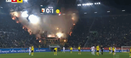 第46分钟,气氛热烈,现场球迷燃放烟花